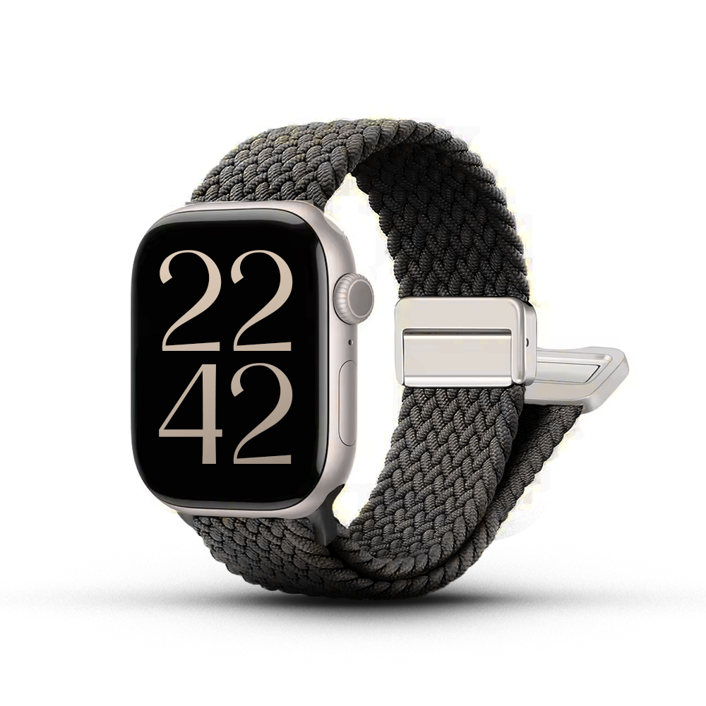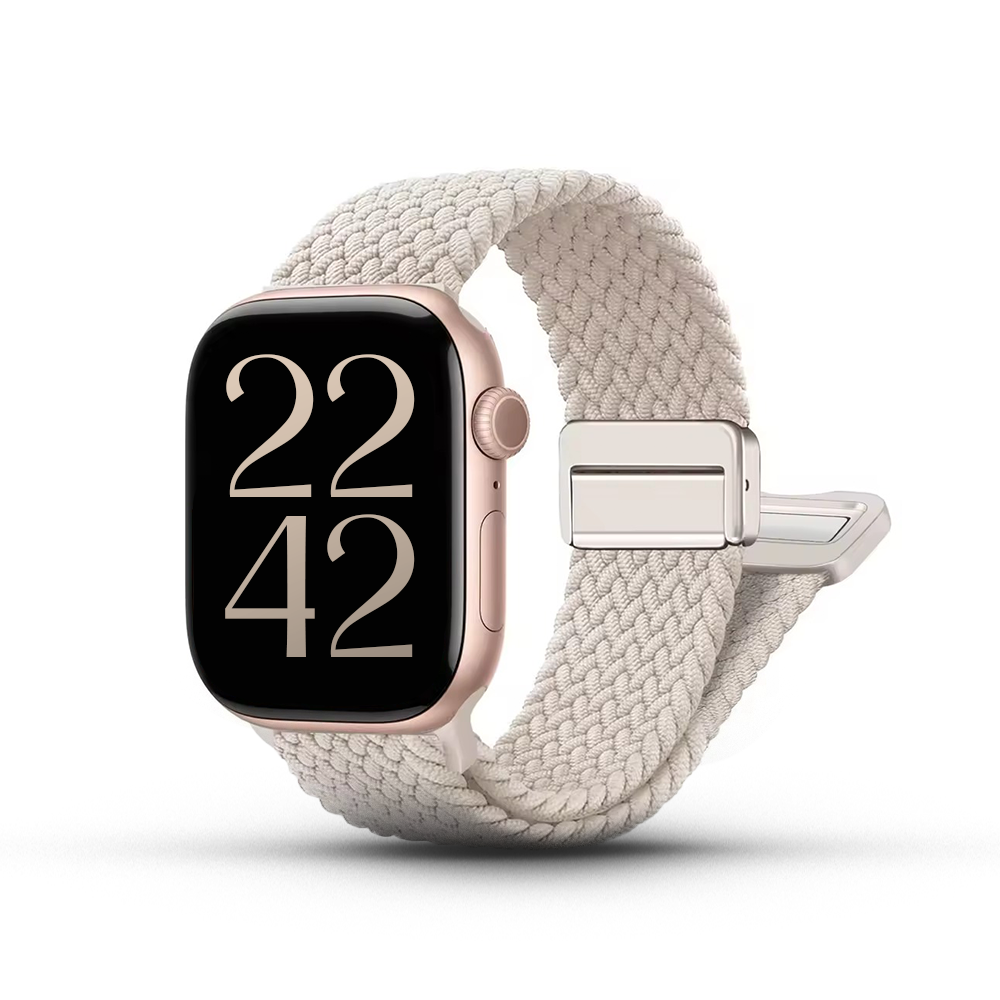 Son tissage dense et souple épouse naturellement le poignet, tandis que la boucle réglable en métal assure un maintien sûr et précis.